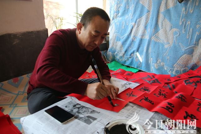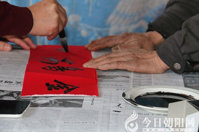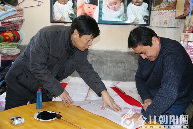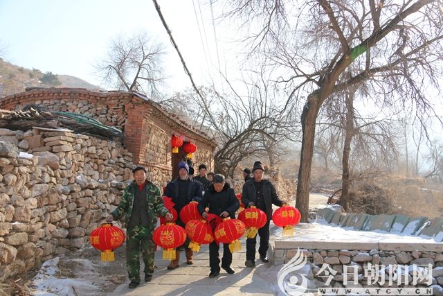 活動現場,朝陽市文聯創(chuàng)評部主任、楹聯家協會主席孫超,市文聯志愿者服務隊負責人、市民俗攝影學會會長杜福生,縣書法家協會主席辛向民,共同組織同行的人們,為老鄉(xiāng)寫對聯,發(fā)燈籠。杜福生親自上陣,一手錘子一手釘,把火紅的燈籠高高掛在老鄉(xiāng)家的大門口。小編在現場感覺到,一道道用石頭壘起、黃土泥抹縫的老墻,一座座鄉(xiāng)土氣息濃郁、歷經百年滄桑的老院子,在大紅燈籠的映襯下,正領先一步邁進春天的門檻兒。