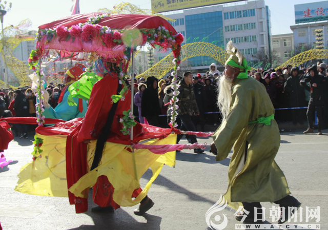遼寧省喀喇沁左翼蒙古族自治縣古稱利州。丁酉年正月十四,喀左縣舉辦了“2017年利州之春民族民間秧歌匯演”。在這場歡樂的秧歌盛宴中,有踩高蹺、舞獅子、跑旱船、老漢推車,還有高難度的背閣、捕蝴蝶等節(jié)目,讓父老鄉(xiāng)親享受到了一場高水平的視覺盛宴。