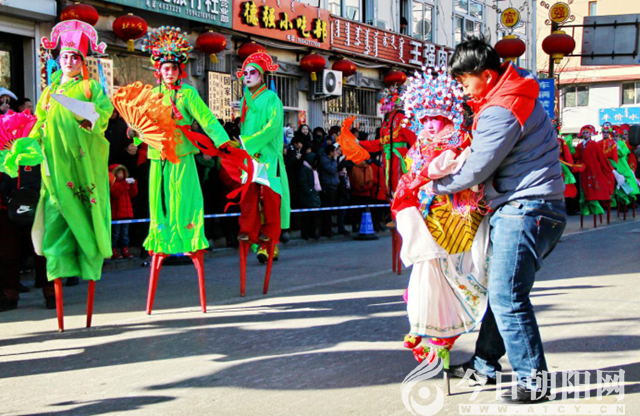 目前,我國實行二胎政策,人民群眾歡欣鼓舞。扭秧歌現(xiàn)場,攝影人捕捉到了這樣一個溫馨的畫面。
