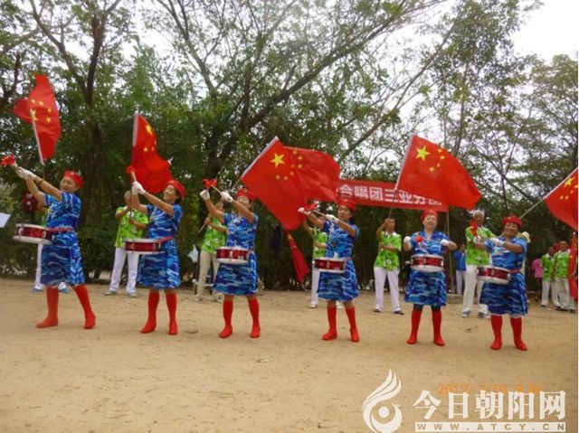 哈爾濱大壩合唱團的指揮李淑英老師,帶領著小鼓隊表演《一二三四》歌。朝陽人民公園群藝合唱團的馬連忱領著國旗隊,配合小鼓隊美女,在后邊揮舞紅旗助威。
