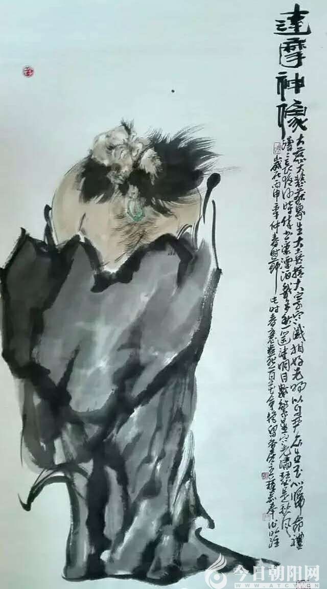 中國傳統(tǒng)文人畫,是世界上非常獨特的藝術(shù)模式,承載了上千年中國傳統(tǒng)文人的審美意識和造型觀念。蘇磊在追求書寫造型傳統(tǒng)回歸之外,特別鐘情“全色彩”沒骨法,在同一幅作品中,線條雖占主導地位,而彩墨和水墨暈染卻有極強的視覺沖擊,并與之形成鮮明對比,別具風味,這一蒼筆墨韻,形成了蘇磊寫意人物的情感符號,這是“蘇式筆墨”與精神的結(jié)合體,是畫家藝術(shù)生命的墨痕。“一袖飄然一布囊,別有天地此中藏。破衫定是拈花悟,非顛非拙亦非狂。” 這是畫家借《彌勒》而映射隱藏在畫中內(nèi)心深邃的情感世界呢?還是跨越無限時空續(xù)寫佛道有緣?