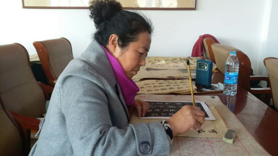 省書協(xié)會(huì)員、副秘書長(zhǎng)孫淑玉是個(gè)人人皆知的小才女,書畫都達(dá)到了省級(jí)水準(zhǔn),她不僅在培訓(xùn)中虛心學(xué)習(xí),業(yè)余時(shí)間也常常向各位書友虛心求教,聰明不是天生的,都是后天努力的結(jié)果。