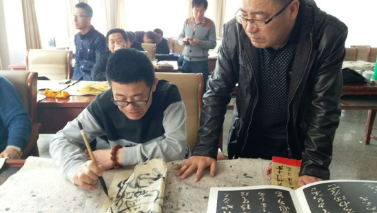 書協(xié)副秘書長(zhǎng)路桂榮在臨帖(右)
