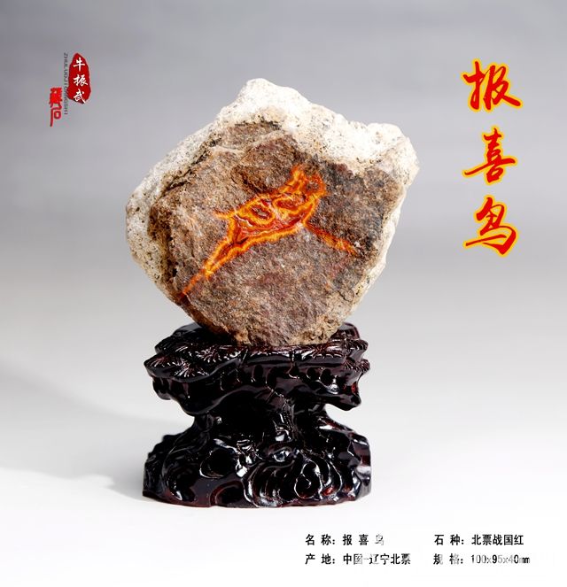 牛振武1968年出生于遼寧朝陽(yáng),從小就頑皮的他,對(duì)眼前出現(xiàn)的事物都有一種好奇心,好在心里琢磨事兒。10年前的一天,他的一位朋友想買化石送禮,他開(kāi)車?yán)笥讶ケ逼笔邪蛨D營(yíng)子買石頭時(shí),第一眼看見(jiàn)樹(shù)化石便感到特別新奇,當(dāng)時(shí)花了2000元錢買了5塊。就是在這次偶然的接觸中,像暗夜里點(diǎn)燃了一盞燈,大自然的奇石讓他內(nèi)心一亮,從此對(duì)觀賞石的喜愛(ài)一發(fā)而不可收,很快被色彩斑斕的奇石迷住了。經(jīng)過(guò)多年的玩藏,讓牛振武深深地領(lǐng)悟到,觀賞石本身蘊(yùn)藏的文化含量是其他文化藝術(shù)品所難以比對(duì)的,其內(nèi)含很深,沒(méi)有一定文化涵養(yǎng)的人難以融合其中。于是,他廣泛搜集有關(guān)資料,參加各種觀賞石活動(dòng),投靠名師,使他對(duì)觀賞石的鑒評(píng)和評(píng)估水平很快提高,成為觀賞石藝術(shù)界的名家。特別是近年來(lái)戰(zhàn)國(guó)紅的出現(xiàn),使牛振武在賞石界為之一震,隨著戰(zhàn)國(guó)紅在市場(chǎng)上的紅火,他也紅了起來(lái)。在觀賞石界提起牛振武,人們都會(huì)對(duì)他的經(jīng)歷和能力娓娓道來(lái)。