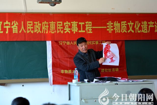 為落實(shí)遼寧省人民政府惠民實(shí)事工程——非物質(zhì)文化遺產(chǎn)進(jìn)社區(qū)、進(jìn)校園,4月27日上午,朝陽(yáng)縣非遺保護(hù)中心同朝陽(yáng)三中教育聯(lián)盟六中小校區(qū)七年八班聯(lián)合舉辦了一次剪紙進(jìn)校園活動(dòng)。朝陽(yáng)縣剪紙代表性傳承人王宗文為七年八班51名學(xué)生傳授了剪紙技藝。