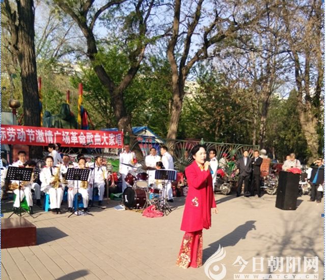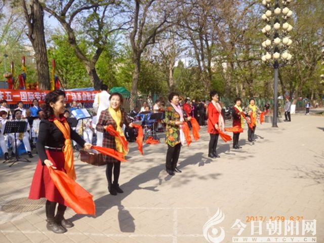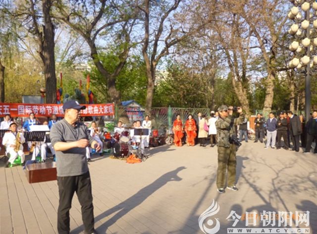 4月29日上午,遼寧省朝陽市人民公園惠風(fēng)和暢,瑞彩千條。朝陽公園合唱團(tuán)與大凌河藝術(shù)團(tuán)聯(lián)手在這里舉辦了一場以“五一勞動節(jié)激情廣場革命歌曲大家唱”為主題的歌友聯(lián)歡會。