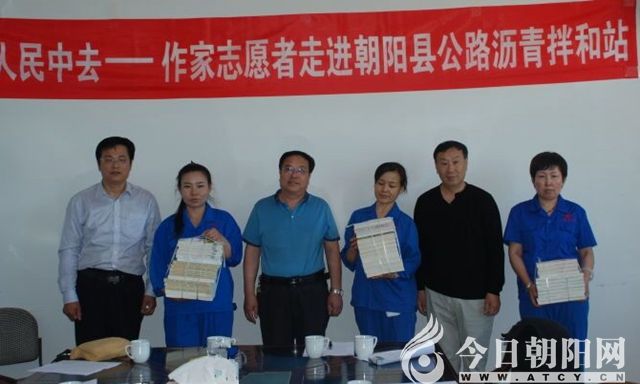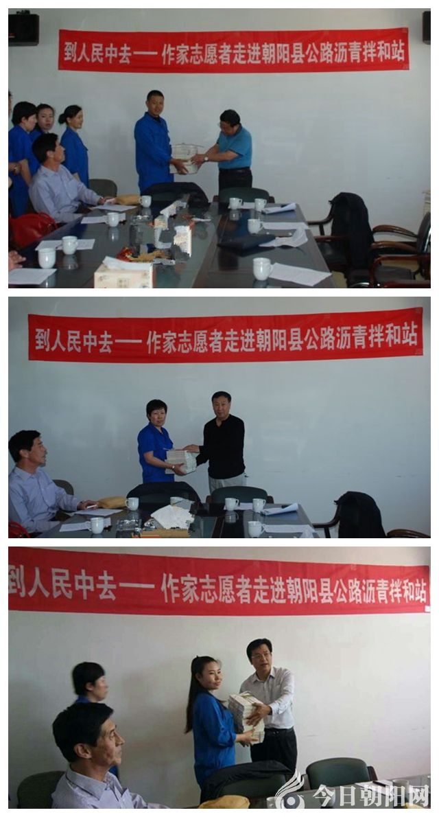 活動(dòng)內(nèi)容主要包括:市文聯(lián)黨組書(shū)記、主席王文書(shū),市作家協(xié)會(huì)主席邸玉超,朝陽(yáng)縣文聯(lián)黨組書(shū)記、主席高樹(shù)彥代表參加活動(dòng)的作家,向朝陽(yáng)縣公路管理段捐贈(zèng)作家作品和書(shū)刊;朝陽(yáng)縣交通局、縣公路管理段負(fù)責(zé)人致歡迎辭并介紹企業(yè)情況;組織作家座談、發(fā)表感言;市、縣文聯(lián)領(lǐng)導(dǎo)講話;參觀拌和站企業(yè)文化,作家們現(xiàn)場(chǎng)為工作人員朗誦詩(shī)歌、雙方互動(dòng)。