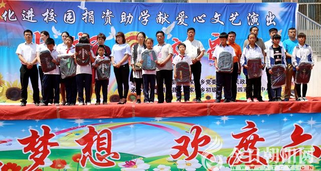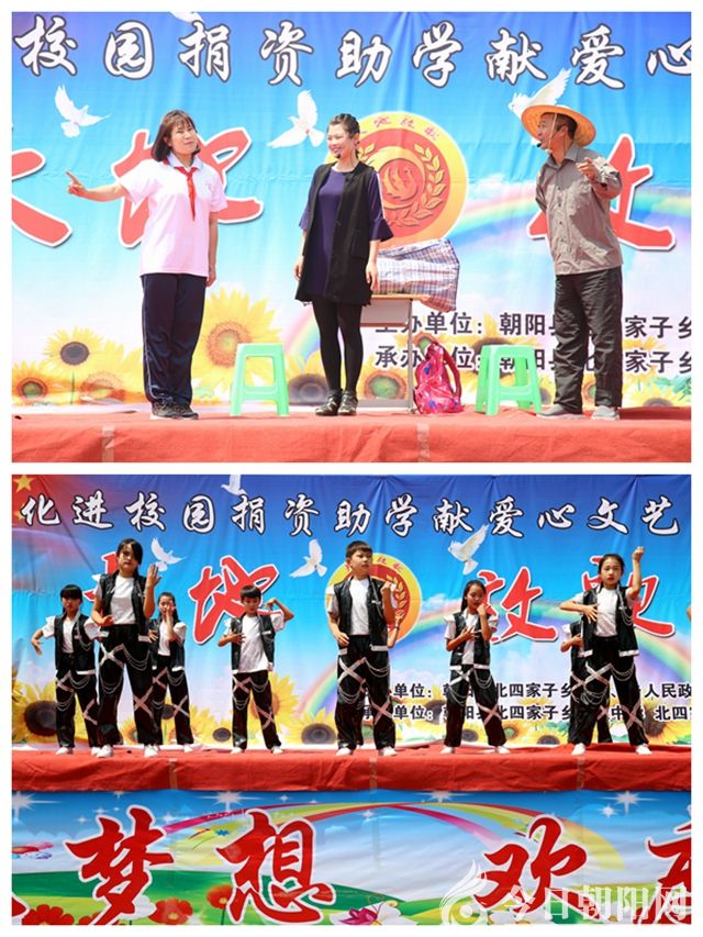 演出中場,朝陽銀行朝陽縣支行、朝陽市宏達(dá)職業(yè)技術(shù)學(xué)校、朝陽富民學(xué)校、北四家子鄉(xiāng)人民政府、北四家子供電所、北四家子派出所等企事業(yè)單位和社會各界愛心人士現(xiàn)場為學(xué)生捐款捐物,展現(xiàn)出了一幅幅和諧友愛、溫馨感人的場面。