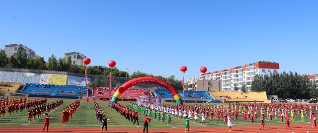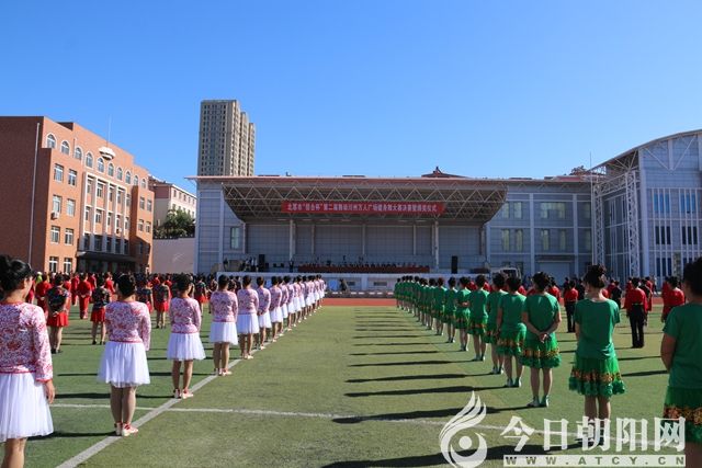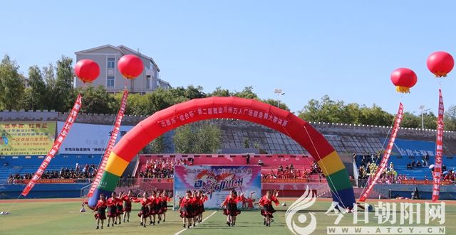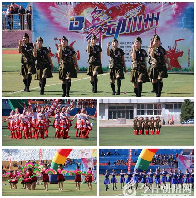 首先進(jìn)行的是團(tuán)體廣場舞表演《秀美江山》。在偌大的體育場上,25支隊(duì)伍、數(shù)百名隊(duì)員傲然挺立在藍(lán)天艷陽之下,形成了一個(gè)規(guī)模宏大的“彩色軍陣”。他們服飾燦爛,動(dòng)作齊整,形體健美,展示了新時(shí)期北票人民熱愛生活、建設(shè)家鄉(xiāng)、笑迎未來的文化自覺、文化自信、文化自強(qiáng)和卓然風(fēng)采!