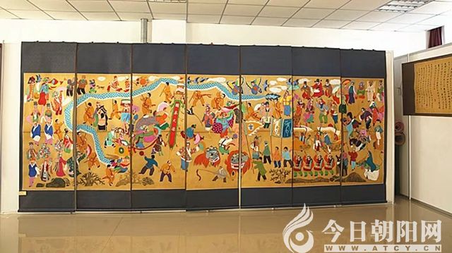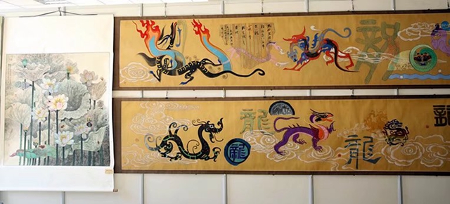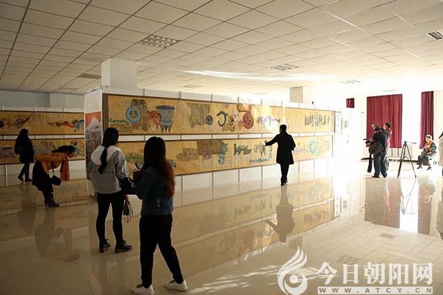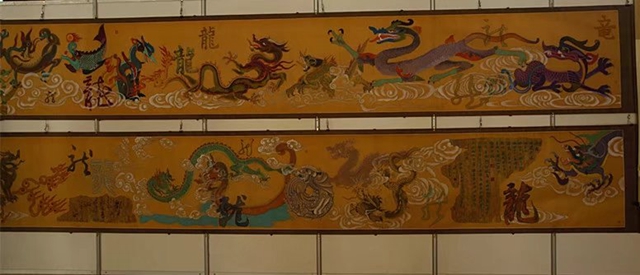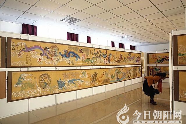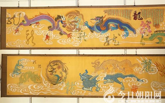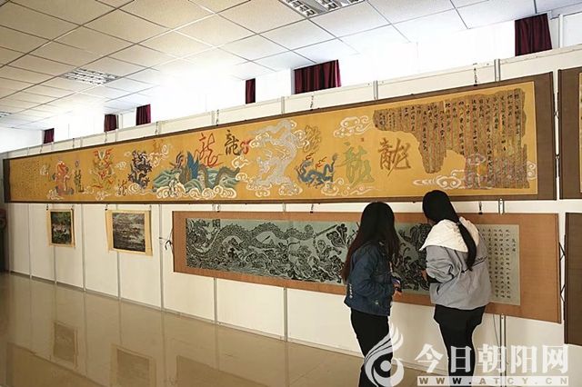10月17日,遼寧省朝陽市群眾藝術(shù)館舉辦了“龍騰朝陽”美術(shù)展。王濤的81米長卷《中華神龍衍相圖》為主要展品。