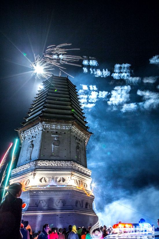 據(jù)史料記載,遼圣宗時為避水患,將建州遷至黃花灘村,并興建黃花灘塔。在塔前坡下約50米處,又建一寺院,謂塔寺合一。清乾隆三十八年的《塔子溝紀(jì)略》記載:“莊頭營子?xùn)|去五里至黃河灘,西距塔子溝二百里,東距三座塔一百里,有古城基址,城西北山坡有古塔一座,高十七層,圍圓十二丈,塔下又小塔一座,高七層,圍圓四丈,每年五月初五、六月初六,百姓宰牛祭祠至今,永無火患。”此黃河灘應(yīng)為今黃花灘。但當(dāng)初記載的塔為十七級,而且旁邊還有一座七級小塔,不知是否記載錯誤。現(xiàn)存的黃花灘塔在清代維修時,做了很大改動,深邃的佛教內(nèi)涵、精美的磚雕圖像與宏偉壯觀的寶塔渾然一體,令人拍案叫絕。