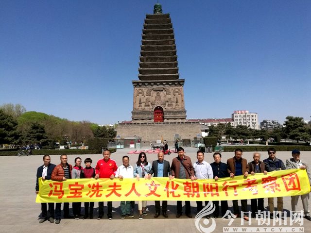 2017年4月,嶺南北燕馮氏后人回遼祭祖團在朝陽北塔前合影留念。 張松/攝