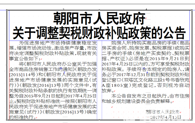 朝陽市人民政府關(guān)于調(diào)整契稅財政補貼政策的公告