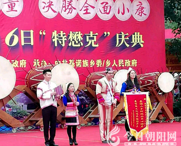來自吉林省的北方基諾族同胞向基諾族鄉(xiāng)贈送錦旗,熱烈祝賀特懋克節(jié)。緊接著,傣族、哈尼族、布朗族等文藝團(tuán)隊(duì)表演了熱情奔放的民族歌舞。