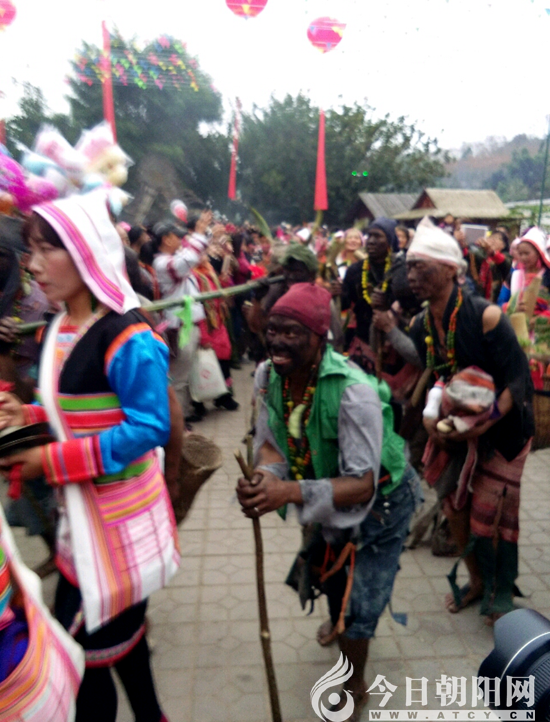 6日上午,居住在景洪市基諾山的基諾族同胞身著民族服裝、扶老攜幼涌向太陽鼓民族文化廣場。七面帶有太陽光芒的大鼓聳立在2018“特懋克節(jié)”慶典大舞臺上。偌大的嘉賓區(qū)長條桌子上,為每位嘉賓用鮮竹筒盛滿本地生產(chǎn)的普洱茶水。基諾族老人用鍋底灰把臉抹黑,在臺下還原古老的生活娛樂場景游行熱場??此麄兦昂艉髶恚瑫r(shí)而摔倒在地的搞怪表演,現(xiàn)場觀眾禁不住開懷大笑。