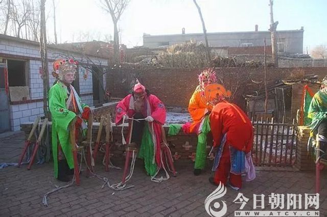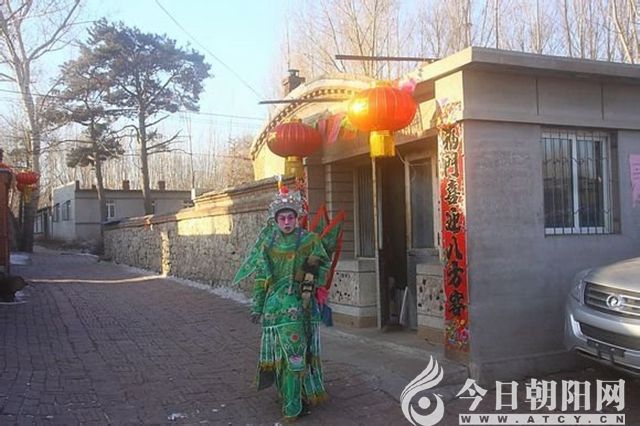 銅鑼再次響起,最后會首出場了。會首不化妝,不著妝,不踩高蹺。一身光腚棉襖棉褲,拿個(gè)小旗,站到主人面前唱幾句答謝的話: