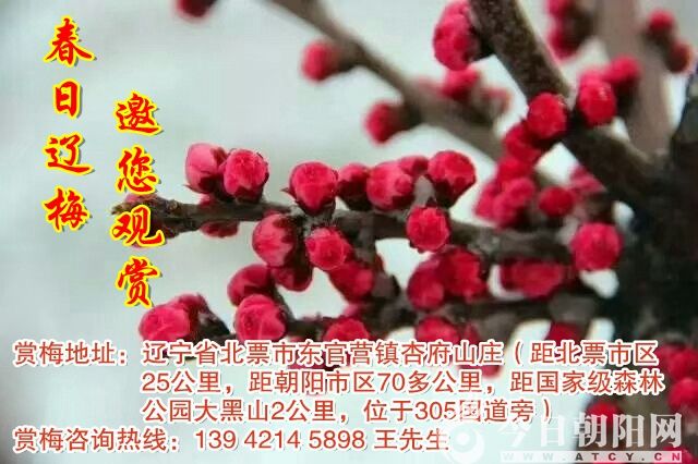 賞梅地址:遼寧省北票市東官營(yíng)鎮(zhèn)杏府山莊(距北票市區(qū)25公里,距朝陽(yáng)市區(qū)70多公里,距國(guó)家級(jí)森林公園大黑山2公里,位于305國(guó)道旁)