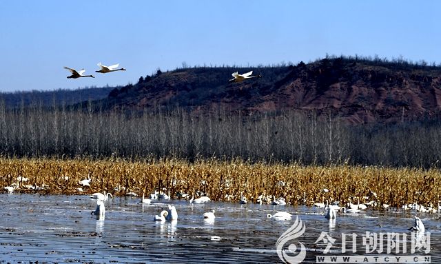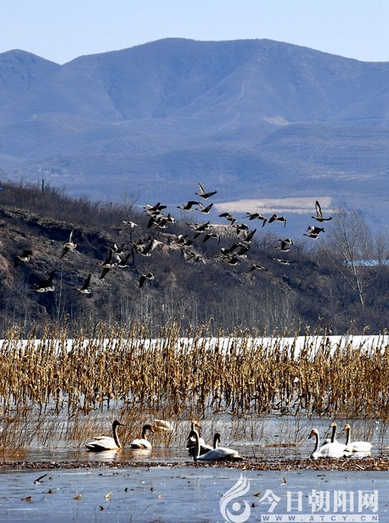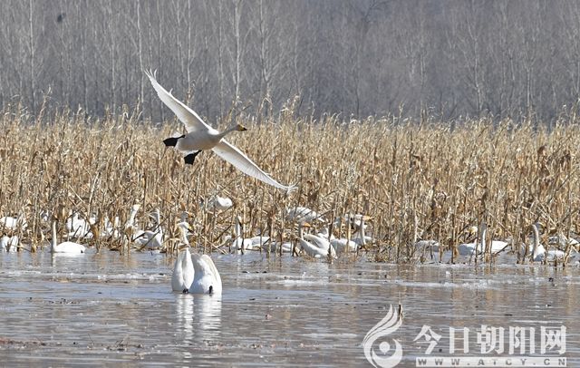 遼寧省北票市白石水庫是省內(nèi)最大的白天鵝遷徙途中的棲息地,每年都有近萬只白天鵝在白石水庫等凌河水域,經(jīng)過一個短暫的休整,補充給養(yǎng)后,繼續(xù)向北方奮飛,奔赴遙遠的西伯利亞。