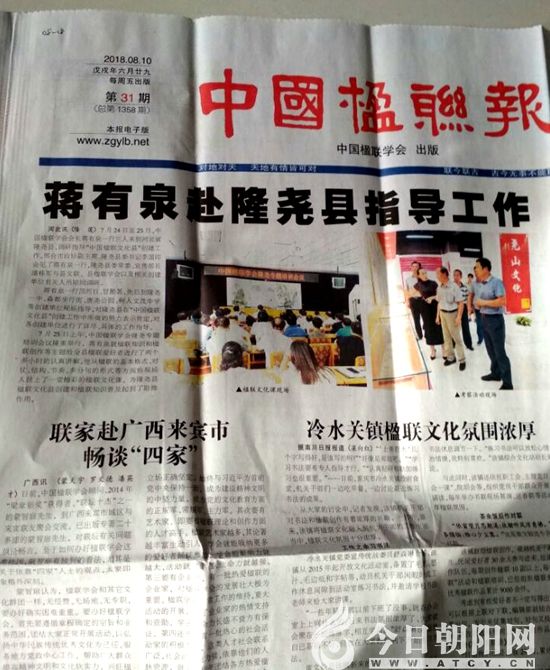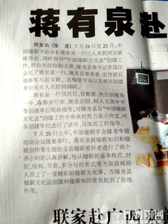 我沒到過隆堯,但一看到隆堯倆字,一聽到隆堯這個縣名,就格外親切。瀏覽今年8月10日《中國楹聯(lián)報》,1版頭條大字標(biāo)題《蔣有泉赴隆堯縣指導(dǎo)工作》赫然入目。蔣先生是中國楹聯(lián)學(xué)會會長,7月24日至25日到隆堯調(diào)研指導(dǎo)“中國楹聯(lián)文化縣”創(chuàng)建工作,曾來到創(chuàng)建單位之一的隆堯一中考察指導(dǎo)。