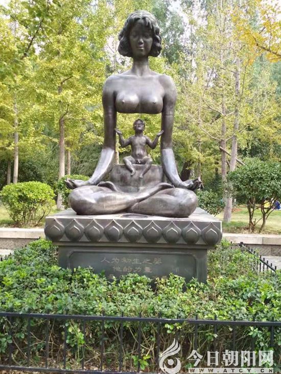 入得園來,走走瞧瞧,尋尋覓覓,在一座母嬰雕像附近的草坪上,姑爺取出一張?zhí)海佌归_來。標簽上寫著——