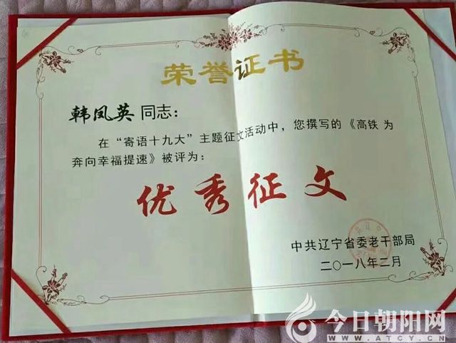 當(dāng)時(shí),身為朝陽(yáng)金秋文學(xué)社成員的我,正好趕上省委老干部局舉辦“寄語(yǔ)十九大”主題征文活動(dòng),我便把當(dāng)時(shí)發(fā)自內(nèi)心的喜悅寫在了稿件里,那篇《高鐵,為奔向幸福提速》獲得了優(yōu)秀征文獎(jiǎng)。