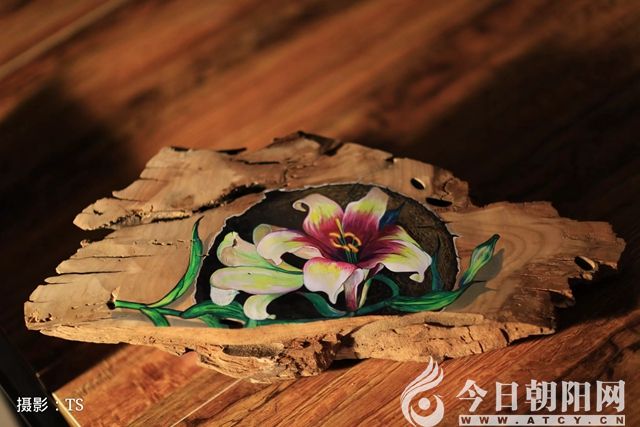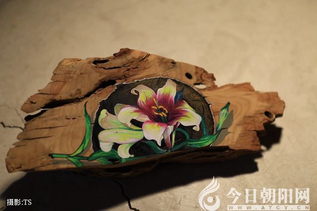不知道哪來(lái)的靈感,竟然讓絢麗多姿的花朵“開(kāi)”在了一塊杏木板上。我能想到的不只有感恩,有呵護(hù),更有親情的綻放,人性的升華以及化腐朽為神奇,傳承人間大愛(ài)的無(wú)盡遐想。