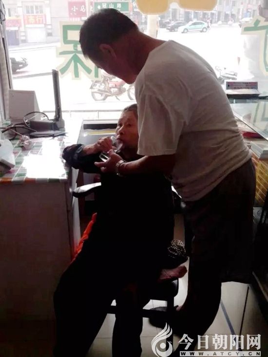 護(hù)士給老太太打完針,兒子將母親抱到旁邊的椅子上坐好,準(zhǔn)備把那喝的藥先喝兩粒。我用手機(jī)拍下這溫馨的畫面。