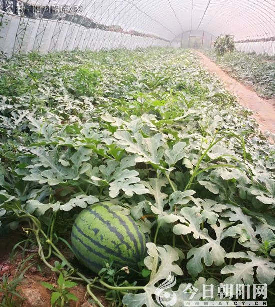 顯然,一看便知是用農(nóng)家有機(jī)肥種植出來的西瓜,紋路清晰,色澤鮮艷,瓜藤上還留著兩片新鮮的綠葉。