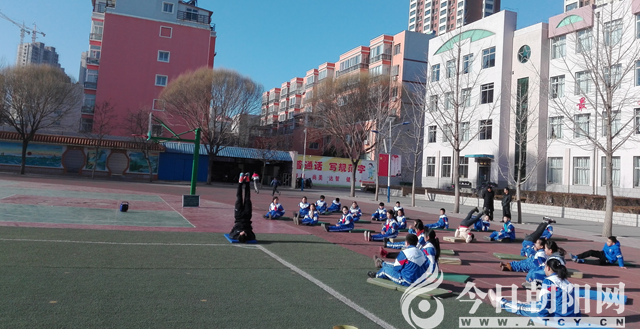 由于異地授課,老師與學(xué)生之間彼此并不熟悉,張國勝老師在課前與學(xué)生進(jìn)行了10分鐘的溝通,以帥氣的外表、親和的語言贏得了學(xué)生的喜歡。北方的12月,天寒地凍,但是一點也沒有影響學(xué)生參與學(xué)習(xí)的積極性。張老師關(guān)注每一個教學(xué)細(xì)節(jié),精心設(shè)計,將本節(jié)課所需要的體育器材——小墊子擺成扇形,由教師帶領(lǐng),指導(dǎo)學(xué)生跟著跑操音樂的節(jié)奏,圍著小墊子進(jìn)行蛇形跑熱身。適時的表揚(yáng)鼓勵,多種形式的變換跑,調(diào)動了學(xué)生的學(xué)習(xí)興趣,學(xué)生一下就進(jìn)入了學(xué)習(xí)狀態(tài)。