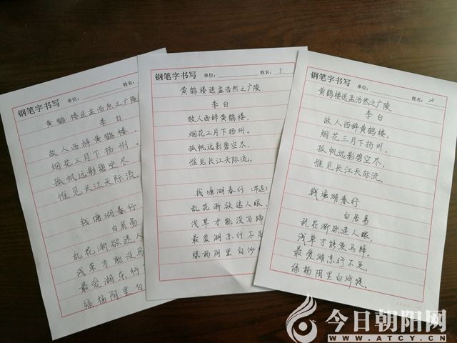 參賽選手的現(xiàn)場“鋼筆字書寫”作品