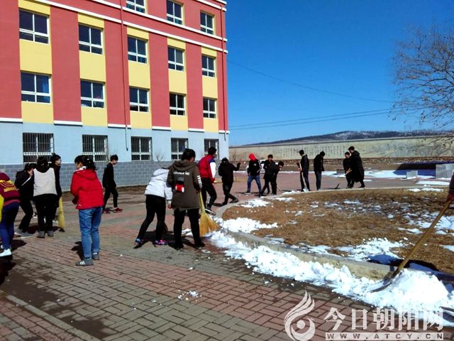 學生們利用午休時間鏟雪
