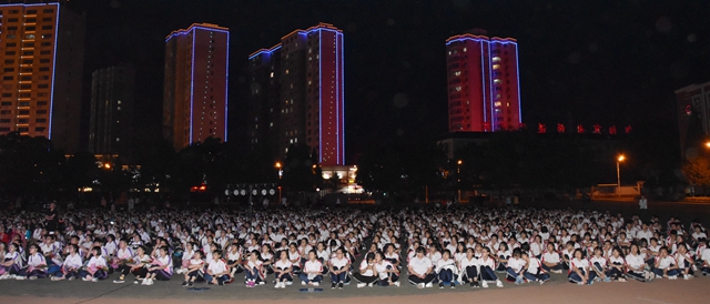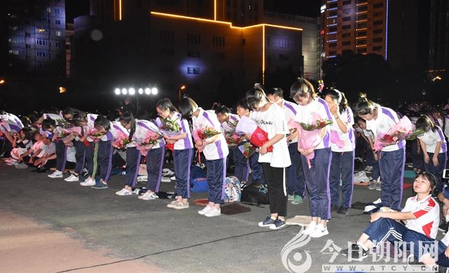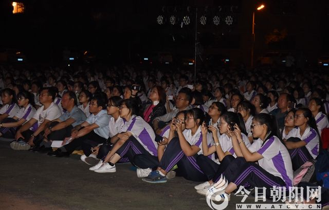 6月3日晚8時,夜風輕柔,繁星閃爍。遼寧省朝陽市第四高級中學2018屆高三學生畢業(yè)典禮在該校操場隆重舉行,學校中層以上干部、高三教師及全體學生參加。