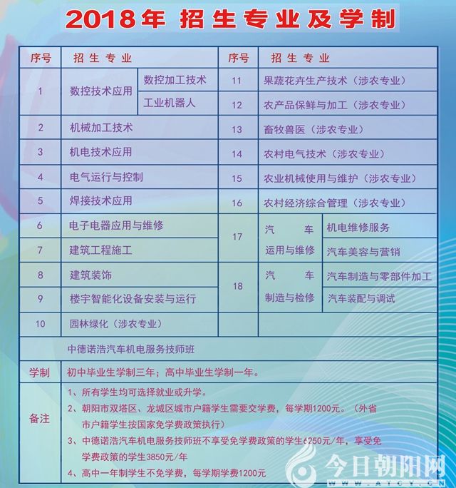 朝陽工程技術(shù)學(xué)校2018年招生簡章