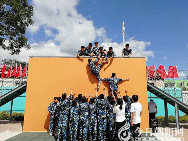 活動一開始,大家都毫無頭緒,因為光滑的墻面沒有一個能著力的點。但逐漸地,在教官的引導下,出現(xiàn)了甘心在底下當人墻的負重者,出現(xiàn)了爬上去拉人的先行者,出現(xiàn)了把手舉高的保護者。高墻上向下伸出有力的手,高墻下向上托起的可靠的肩膀,在烈日之下組成了一幅感人的畫面。十幾個團隊融為一體,奮力拼搏、團結合作,終于成功翻越到高墻之上。在大家全部成功“畢業(yè)”后,有女同學泣不成聲地向所有幫助她的隊友們道謝,有男同學向大家講述團隊力量帶給他的感動,看到這一幕,在場的教練、老師和工作人員也都禁不住淚濕了眼眶。