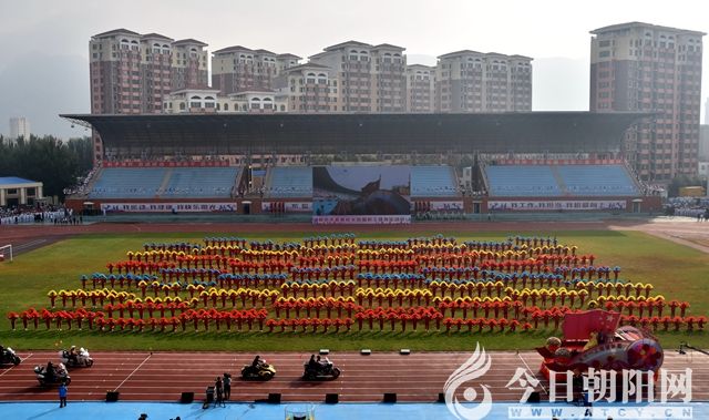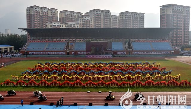 《五個(gè)一工程譜新篇》,由朝陽(yáng)市財(cái)經(jīng)學(xué)校800名學(xué)生組成的表演團(tuán)隊(duì)手持花環(huán)上場(chǎng),隨著隊(duì)形的不斷變換、花環(huán)的色彩變化,呈現(xiàn)出“朝陽(yáng)版圖”“五個(gè)一”“笑臉”等圖案。20輛摩托車(chē)在場(chǎng)區(qū)外圍環(huán)繞,以動(dòng)態(tài)的畫(huà)面感,向觀眾展示了朝陽(yáng)七個(gè)縣(市)區(qū),七星輝映的壯美景象。