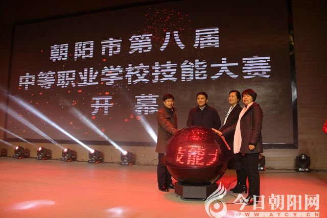 朝陽市委常委、組織部長老顏武,市人大副主任劉志香,副市長張東群,市政協(xié)副主席許靜共同按下啟動球,宣布朝陽市第八屆中職學(xué)校職業(yè)技能大賽正式開賽。