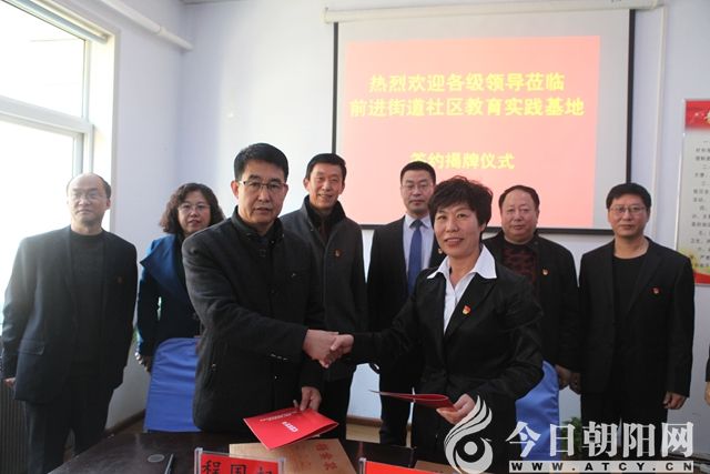 簽約儀式結(jié)束后,朝陽市教育局副局長(zhǎng)李鵬宇、雙塔區(qū)政府副區(qū)長(zhǎng)張立共同為“前進(jìn)街道社區(qū)教育實(shí)踐基地”揭牌。
