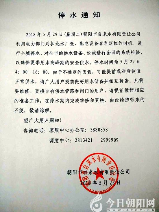 【權(quán)威發(fā)布】遼寧朝陽全城停水,望大家做好準(zhǔn)備!