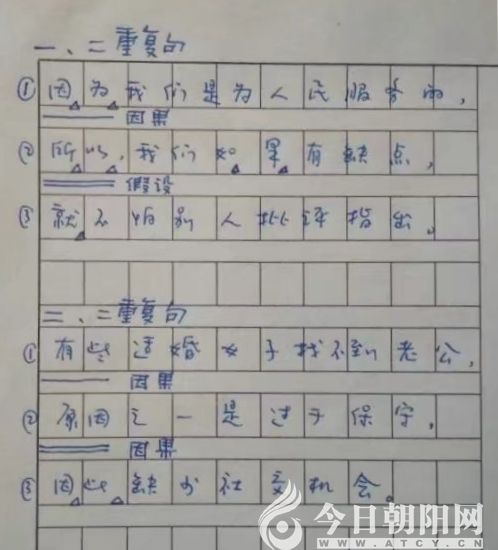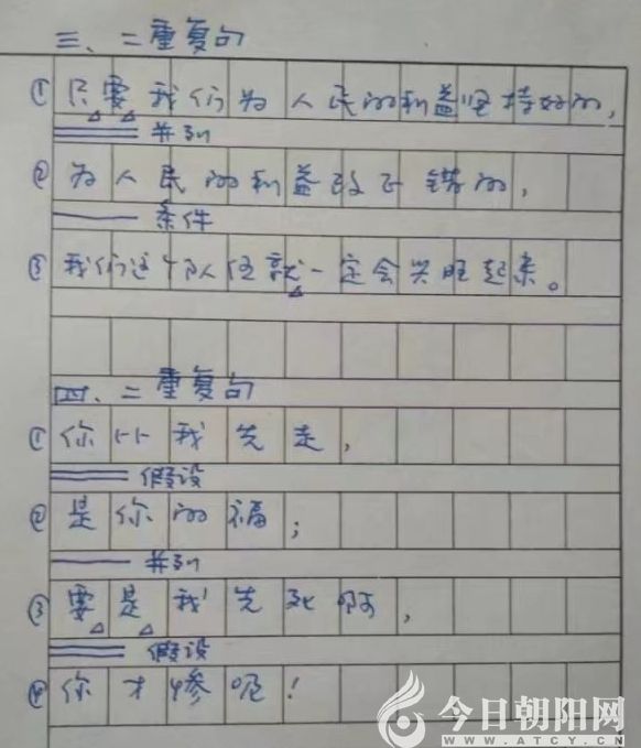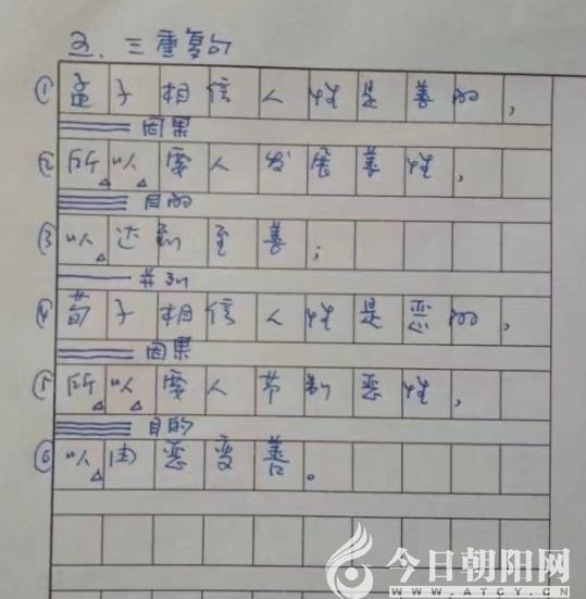 從書面形式上看,多重復(fù)句的每個(gè)分句是依次銜接的,呈線形排列。好多復(fù)句很長,在書面上往往呈折疊式。這樣,對觀察整個(gè)分句有所不便。