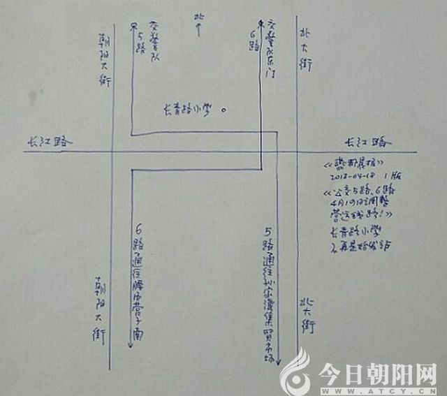 2018年4月18日,《燕都晨報》01版刊出《公交5路、6路4月19日調整營運線路!》。鄙人理解力不強,記憶力不好。怎樣能很快讀懂并記住呢?我想到了畫圖助記憶。于是邊讀邊想,一幅示意圖躍然紙上。