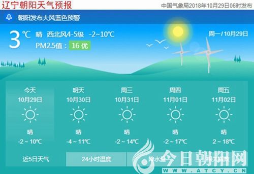 經(jīng)過周末兩天的休整,您是不是已經(jīng)精神飽滿、神采奕奕地做好準備,開始新一周的工作了呢?今天(10月29日)星期一,遼寧朝陽晴,氣溫-2~10℃,西北風4~5級。空氣質(zhì)量優(yōu),可以正常在戶外活動。