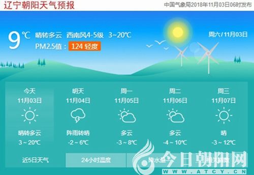 這幾日,遼寧朝陽(yáng)陽(yáng)光充沛、暖風(fēng)和煦,體感相當(dāng)舒適。今天(11月3日),晴轉(zhuǎn)多云,最低氣溫3℃,最高氣溫達(dá)到20℃,西南風(fēng)4~5級(jí),空氣質(zhì)量一般,敏感人員外出時(shí),需做好防護(hù)措施。