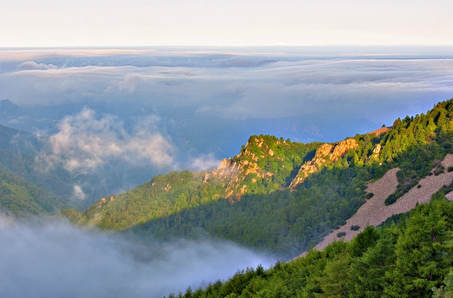 附:霧靈山位于河北省承德市興隆縣城的西北部,周環(huán)京、津、承、唐、秦五市,交通十分便利。霧靈山為燕山山脈的主峰,海拔 2118 米。公園總面積為 1.44 萬公頃,森林覆蓋率 76.2% 。
