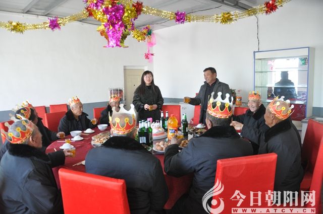 正月初七,喜慶的燈籠、大紅的春聯(lián),把遼寧省朝陽市邊杖子鎮(zhèn)敬老院裝扮的年味兒十足,10位老人頭戴壽星帽品佳肴美酒,在鎮(zhèn)領(lǐng)導(dǎo)和院長孟憲勛的祝福聲中,喜慶七十大壽!