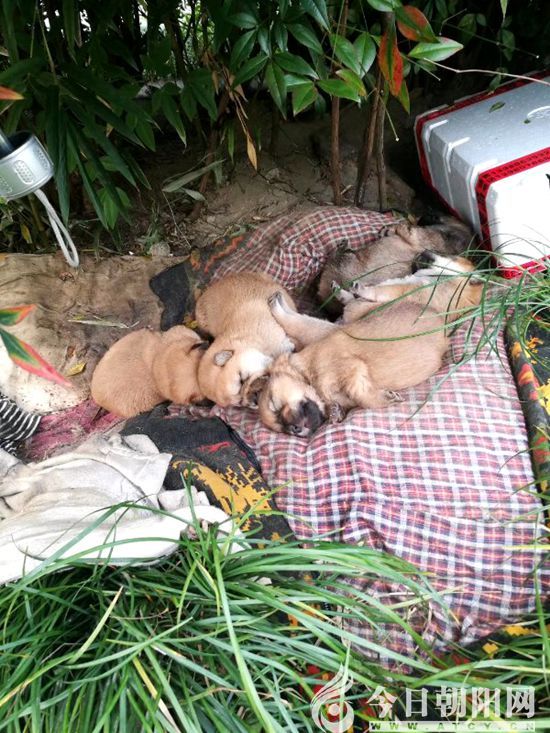 今年年初有人發(fā)現(xiàn)阿黃懷小寶寶了。在二月一個寒冷的晚上,生了五個狗寶寶。小區(qū)的一位女士,第二天喂食時發(fā)現(xiàn)它生產(chǎn)了,就一直守護在阿黃和寶寶旁邊,每天守到晚上九、十點鐘,很多好心人也加入到守候喂養(yǎng)的隊伍里。可就是這樣,也沒守住,被偷了三個狗寶寶。