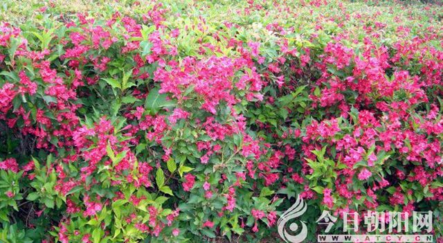 觀賞錦帶花,我最感嘆錦帶花的生機。她不同于尋常春花,匆匆而謝。她逢春開花,次第不斷,名副其實地常開不敗;她更不是嬌貴之花,挑剔、嬌柔。她不擇勢利之地,隨遇而安。處肥沃膏腴之地,她生長得壯碩亦不招搖;落荒寂貧瘠之處,同樣以朵朵紅艷面向人間!