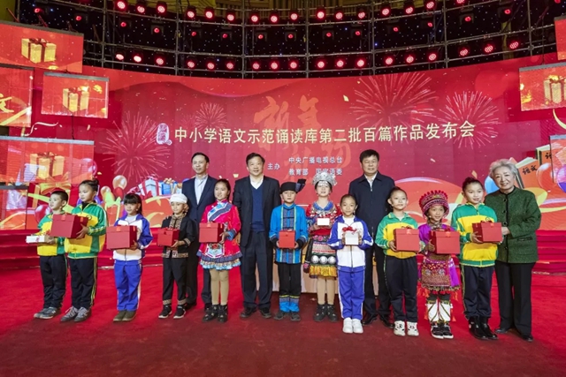 12月23日,由中央廣播電視總臺、教育部、國家語委聯(lián)合舉辦的“中小學(xué)語文示范誦讀庫”第二季作品發(fā)布會在北京舉行。中宣部副部長、中央廣播電視總臺臺長慎海雄,教育部副部長、國家語委主任杜占元,中央廣播電視總臺副臺長閻曉明出席發(fā)布會,共同見證第二批100篇音頻教材正式上線發(fā)布。