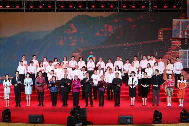 中央廣播電視總臺參與誦讀庫錄制的播音員主持人代表和現(xiàn)場的觀眾們