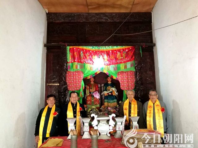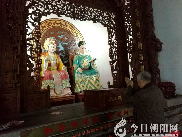 馮永謙先生拜高州冼太廟內(nèi)的馮寶、冼夫人像(張松 攝)