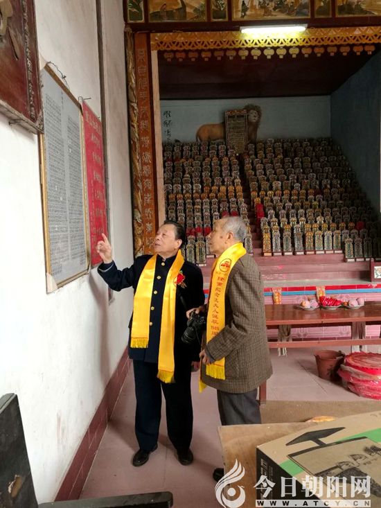 馮永謙先生在高州長坡舊城冼太廟考察當(dāng)?shù)匚奈飯D片展(張松 攝)